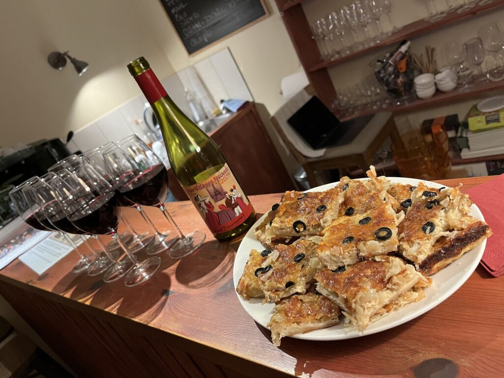 Täpselt südaööl avame Beaujolais Nouveau pudelid. Veini kõrvale pakume traditsioonilist sibulapirukat.